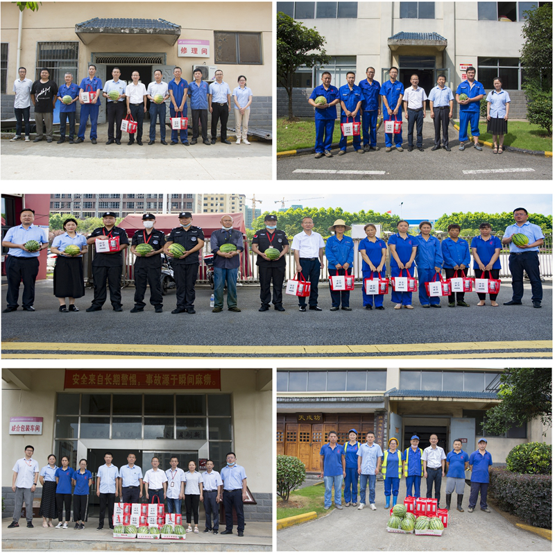 活動中,謝毅一行前往釀造、包裝、勾儲、后勤等一線部門,向工作在一線的員工送去西瓜、古樂神曲等防暑降溫物品,并叮囑他們要加強自身防護,做好防暑降溫工作,確保人身安全、生產(chǎn)安全。