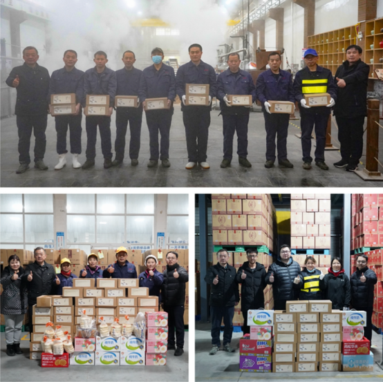 慰問組一行帶著公司的關(guān)懷,先后至包裝車間、儲(chǔ)運(yùn)部、釀造車間了解生產(chǎn)情況,并為他們送去了面包、牛奶、水果等慰問物資,激勵(lì)職工迎戰(zhàn)生產(chǎn)高峰,助力旺季生產(chǎn)。