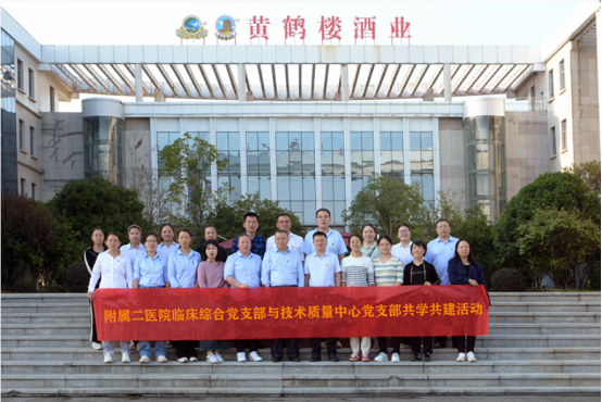 近日,黃鶴樓酒業(yè)技術質(zhì)量中心黨支部與湖北科技學院附屬二醫(yī)院臨床綜合黨支部聯(lián)合開展共學共建活動,湖北科技學院附屬二醫(yī)院臨床綜合黨支部書記劉濤,黃鶴樓酒業(yè)技術質(zhì)量中心黨支部書記、酒體設計總工程師李久洪出席活動。