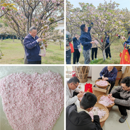 活動現(xiàn)場,技術質量中心相關人員詳細介紹了花瓣分揀標準。隨后,10余名黨員進行分組作業(yè),精心采摘,嚴格篩選出符合釀酒標準的優(yōu)質花瓣,把好源頭原料關,共采集10余斤優(yōu)質櫻瓣。