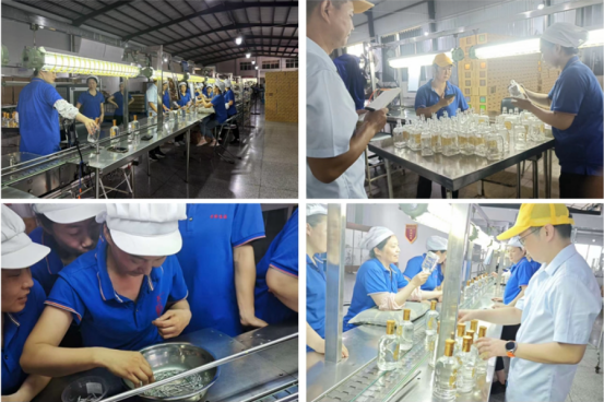 競賽現場,參賽選手分別在“火眼金睛-驗酒比拼”“心靈手巧-鉚釘分類”“質檢能手-酒瓶缺陷識別”三個項目上比拼操作技能,車間管理人員擔任裁判和記錄員,現場氛圍熱烈,緊張有序,經過激烈的角逐,共產生優(yōu)勝人員11人。
