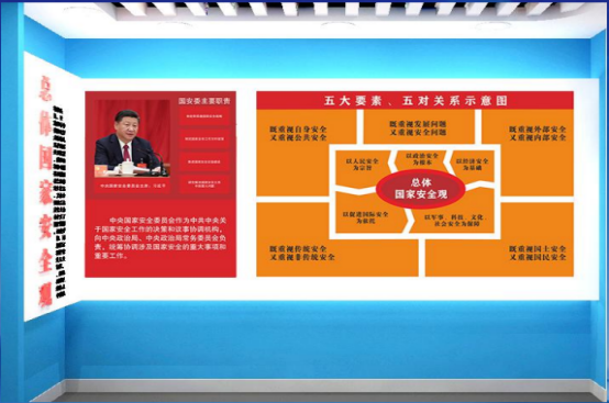 展廳二:從網(wǎng)絡(luò)、社會(huì)、金融、生態(tài)、政治五個(gè)方面深入剖析國(guó)家安全“總體國(guó)家安全觀”,將國(guó)家安全與每位參觀者緊密聯(lián)系。
