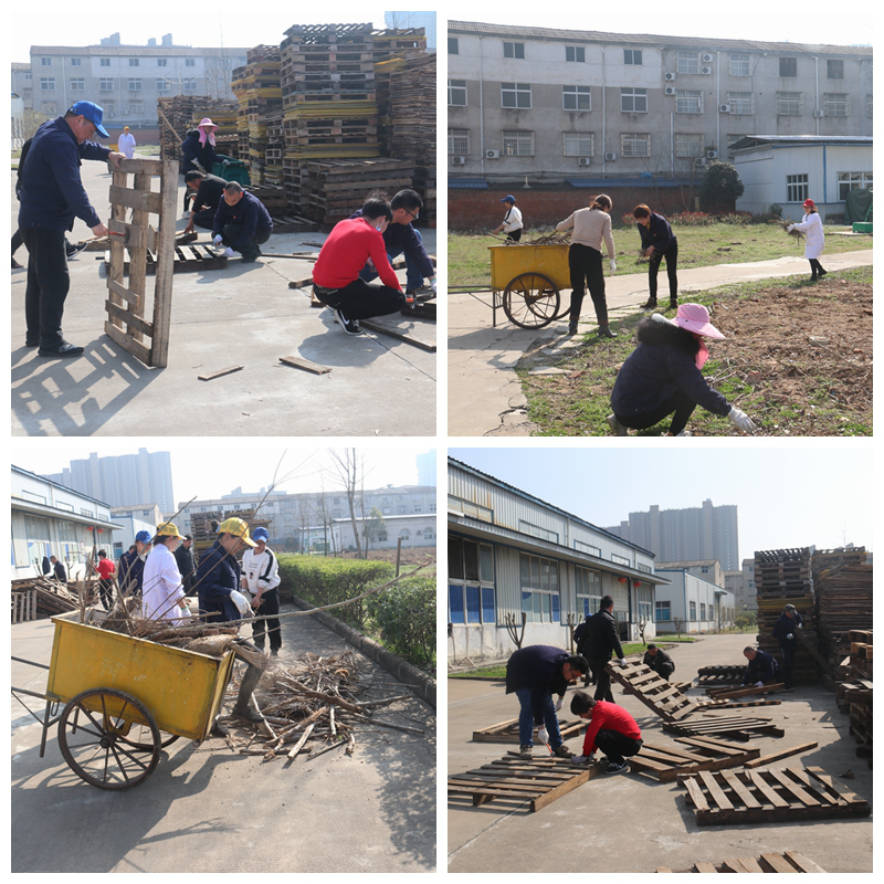活動過程中,公司黨委委員、隨州黨支部書記閔波平和大家一起整理廠區(qū)環(huán)境衛(wèi)生、維修破損托盤。大家分工合作、齊心合力,清理廠區(qū)樹枝、排水溝垃圾,共維修托盤70余個。