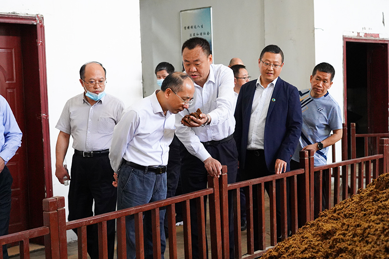 在調(diào)研美酒銀行和釀造車間時(shí),張柏青實(shí)地感受了黃鶴樓酒的儲(chǔ)存環(huán)境,仔細(xì)查看了黃鶴樓酒酒醅,并了解了黃鶴樓酒生產(chǎn)情況和原酒產(chǎn)能。