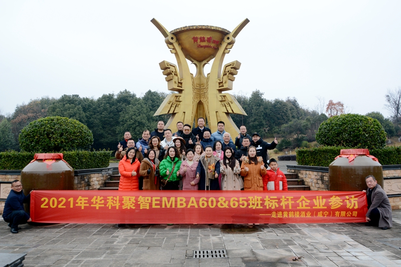 12月25日,華科聚智EMBA60&65班標桿企業(yè)家到黃鶴樓酒業(yè)(咸寧)有限公司參觀交流,黃鶴樓酒業(yè)黨委書記、董事長許鵬接待來訪。