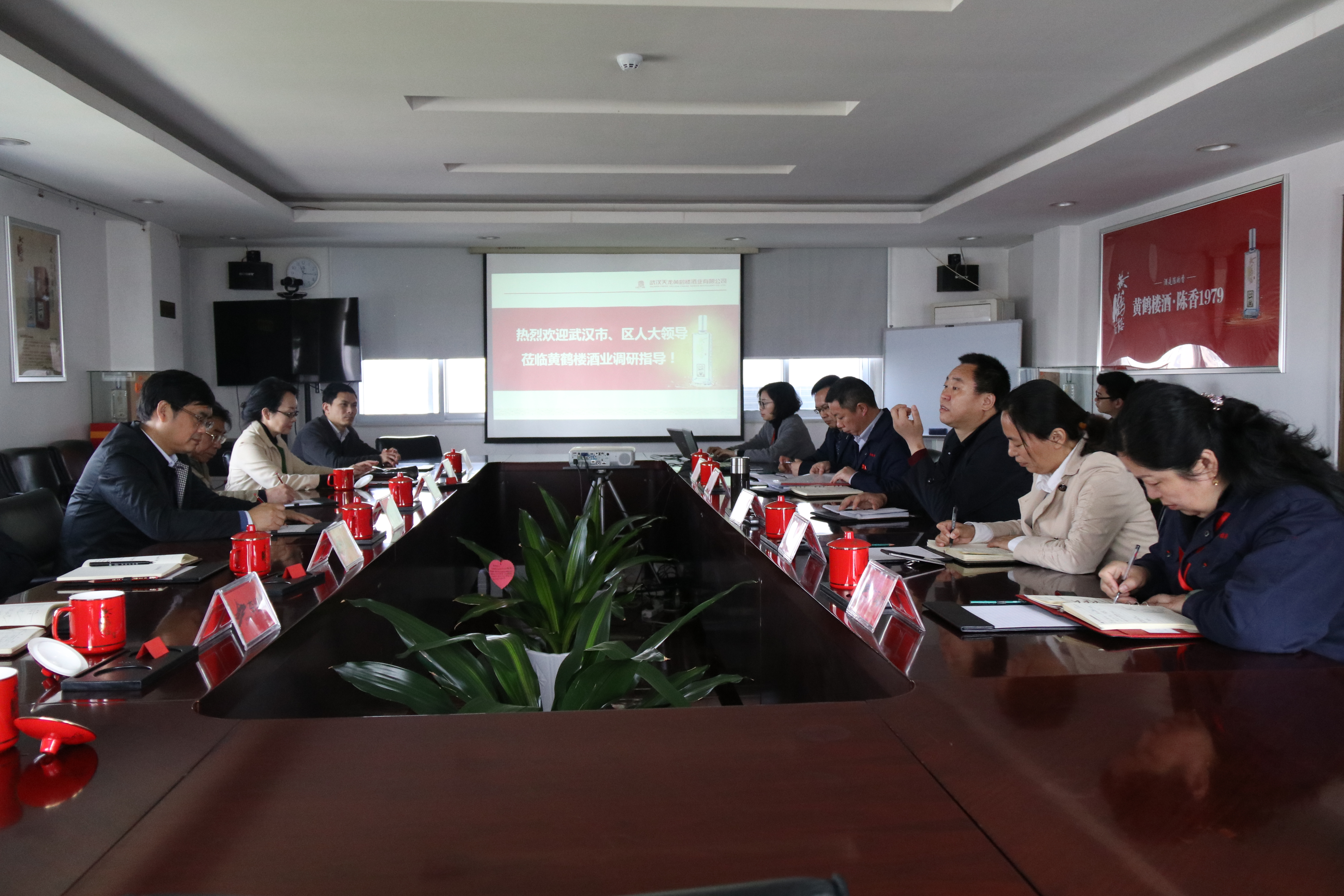 3月29日下午,武漢市人大副秘書(shū)長(zhǎng)王波,江漢大學(xué)教授甘德安,漢陽(yáng)區(qū)人大常委會(huì)常務(wù)副主任鄒俊煜一行到武漢黃鶴樓酒業(yè)調(diào)研,黃鶴樓酒業(yè)黨委書(shū)記、董事長(zhǎng)許鵬,黨委副書(shū)記、財(cái)務(wù)總監(jiān)麻玉俠接待來(lái)訪。