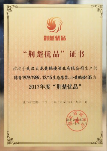 會上,武漢市共有8家企業(yè)產(chǎn)品被省商務(wù)廳授予“荊楚優(yōu)品”,其中,黃鶴樓酒業(yè)生產(chǎn)的陳香1979/1989、12/15生態(tài)原漿、小黃鶴樓135等五種產(chǎn)品獲評2017年度“荊楚優(yōu)品”。
