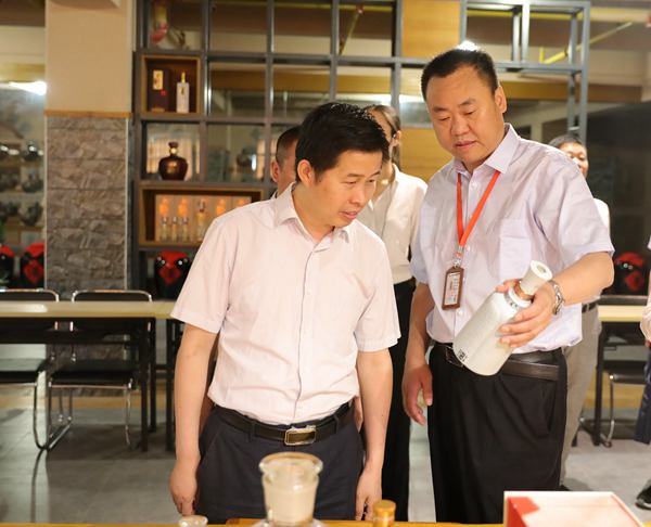 5月28日,漢陽(yáng)區(qū)委副書記范禮奎,漢陽(yáng)區(qū)洲頭街黨工委書記楊紅喜一行到黃鶴樓酒業(yè)參觀調(diào)研,黃鶴樓酒業(yè)黨委書記、董事長(zhǎng)許鵬,副總經(jīng)理麻玉俠,總經(jīng)理助理魏國(guó)陪同調(diào)研。