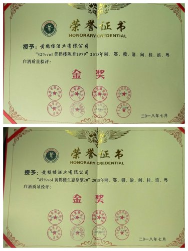 近日,在福建省福州市羅源縣舉行的第十屆“閩湘鄂贛渝桂滇粵酒類質量檢評交流會”上,黃鶴樓酒業(yè)的“45度黃鶴樓生態(tài)原漿20”、“42度黃鶴樓陳香1979”獲評金獎產品榮譽稱號。